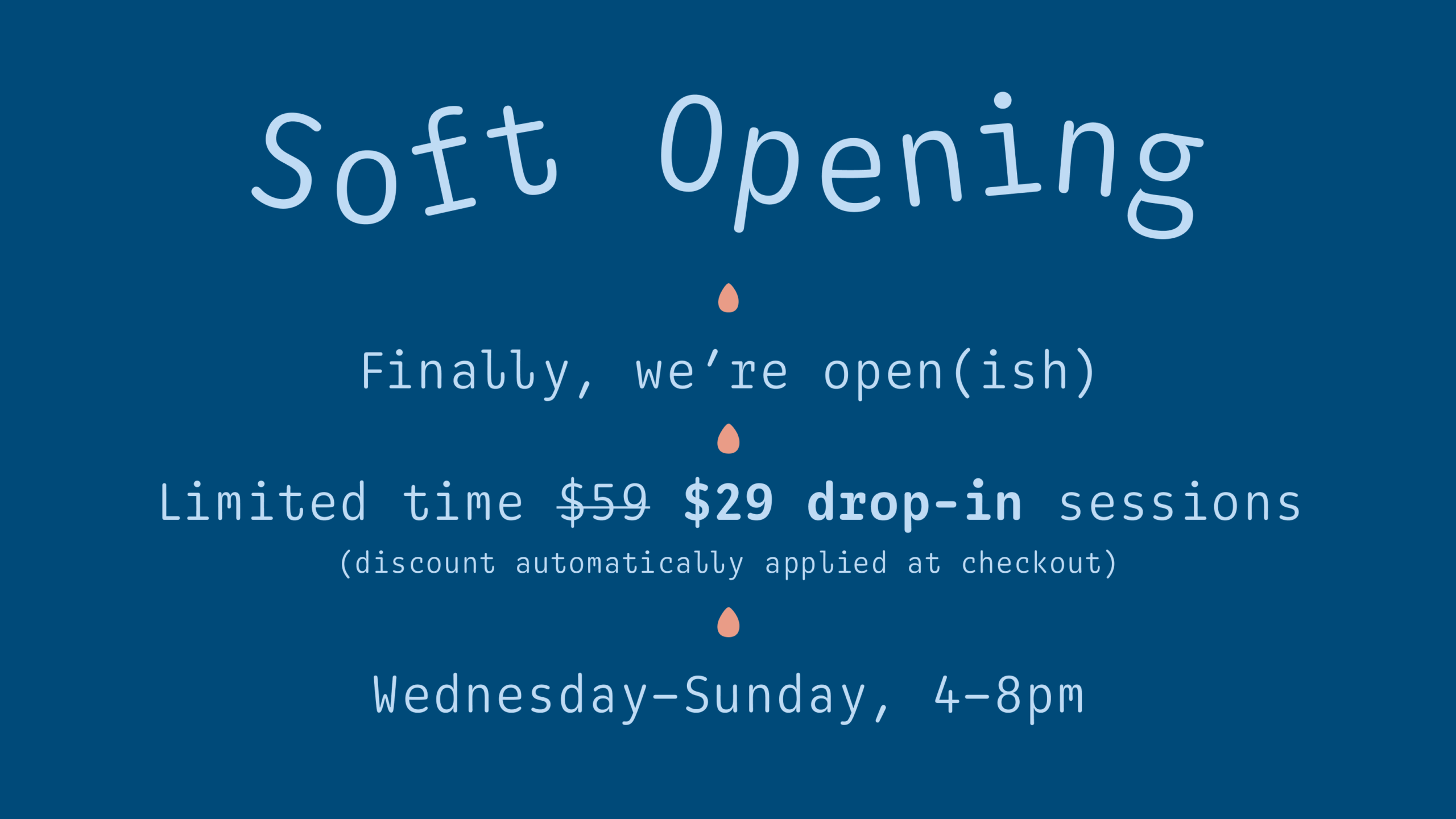 We’re (soft) open! Wednesday – Sunday, 4pm – 8pm. Limited time |